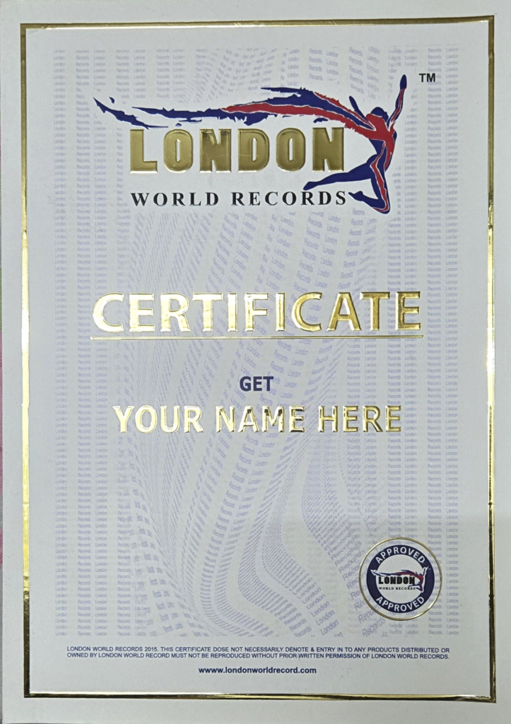 London world Records keeps records of achievements across the world resulting in a world record.